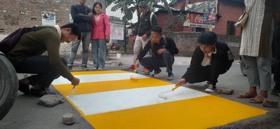 विद्यार्थीहरुको सुरक्षा र गाडीको तीब्र गति नियन्त्रण गर्न कक्षा कमिटीहरुद्वारा जेब्रा क्रसिङ निर्माण गरिएको हो ।