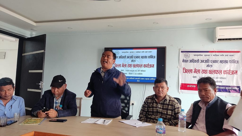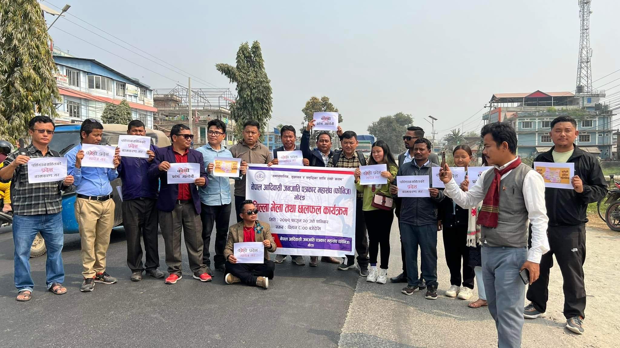 पथरी । नेपाल आदिवासी जनजाति पत्रकार महासंघ (फोनिज) मोरङले शनिबार बेलबारीमा कोशी प्रदेश विरुद्ध प्रदर्शन गरेको छ ।