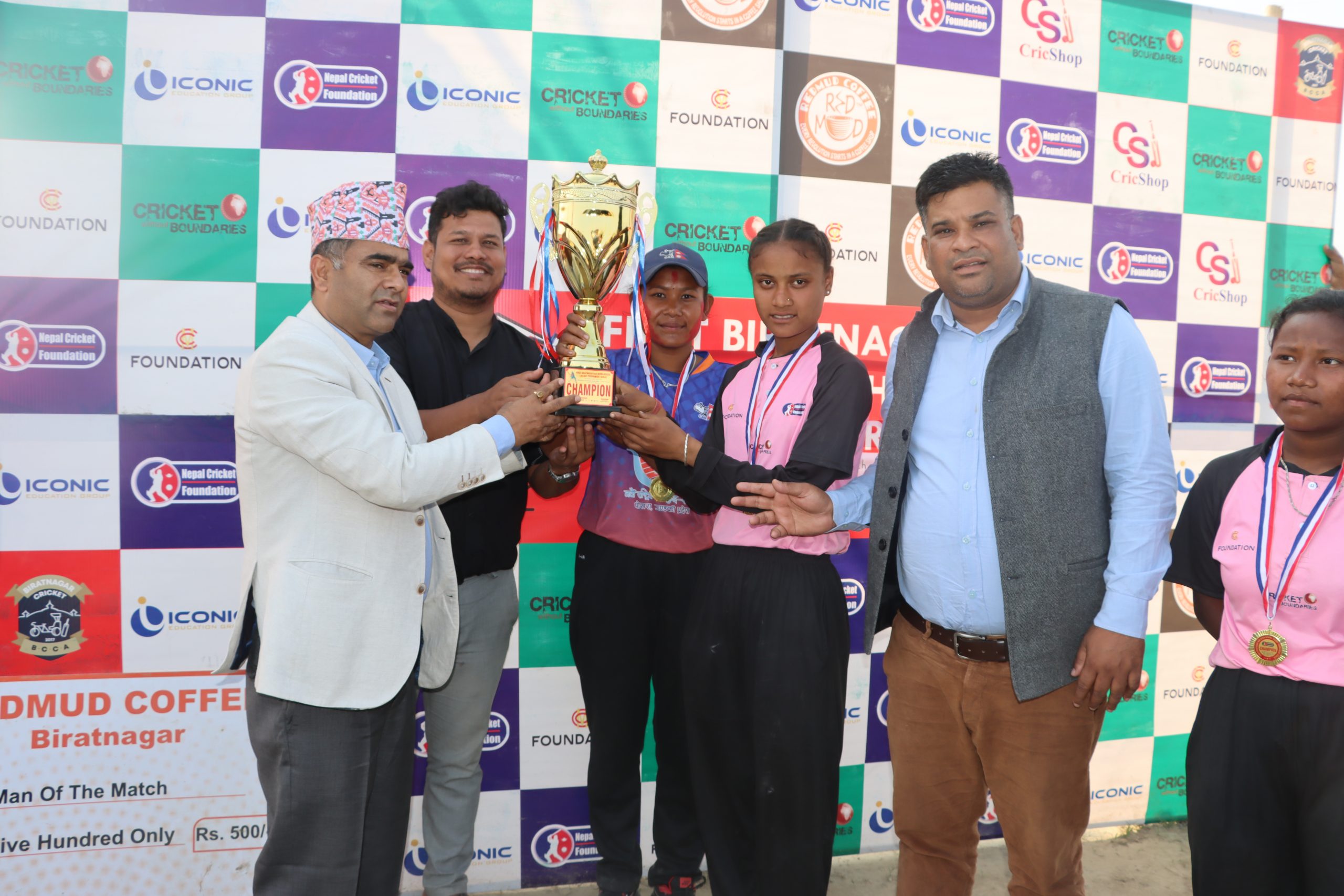 विराटनगर । प्रथम विराटनगर हव अन्तर स्कुल महिला क्रिकेट प्रतियोगिताको उपाधि सोमबार लक्ष्मी स्कूल जहदाले जितेको छ ।