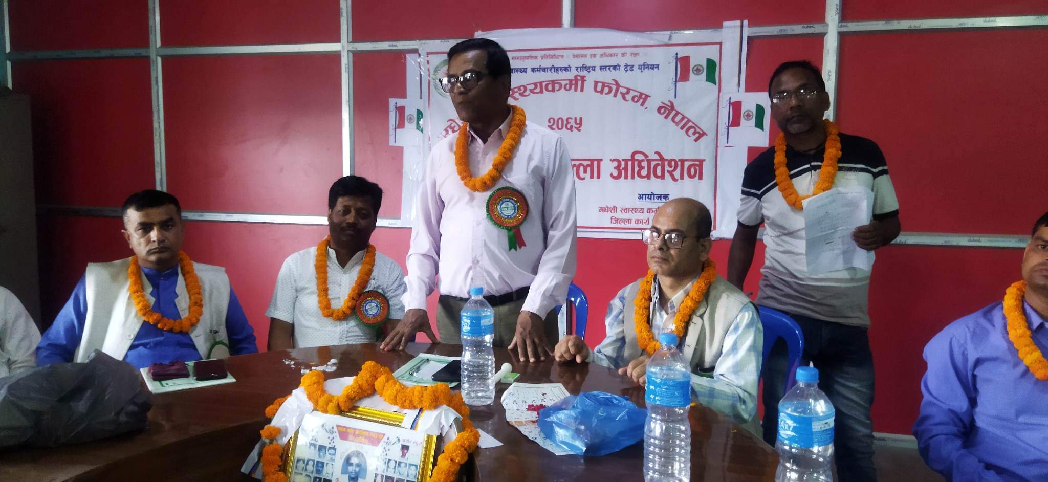 विराटनगर । मधेशी स्वास्थ्यकर्मी फाेरम नेपाल माेरङकाे तेस्रो जिल्ला अधिवेशन बिराटनगरमा शनिबार सम्पन्न भएको छ । अधिबेशनले स्वास्थ्यकर्मी फाेरमकाे अध्यक्षमा पप्पु कुमार यादव सहित ९ सदस्यीय समिति निर्वाचित गरेको छ। त्यसै गरि उपाध्यक्षद्वयमा प्रेम लिम्बू , मनिषा देव, सचिबमा हरिनन्दन साह, सह सचिवमा रामनाराय यादव, काेषाध्यक्षमा रन्जु मेहतालाई निर्वाचित भएका छन् । सदस्यहरूमा भने किशोर कामत, सदेवसुनरी यादव, पुनम कुमारी कर्ण लगायतलाई निर्वाचित गरेको छ । फाेरमकाे तेस्रो जिल्ला अधिवेशनले अध्यक्षमा पप्पु यादव सहित नाै सदस्य समिति निर्वाचित भएकाे हाे।