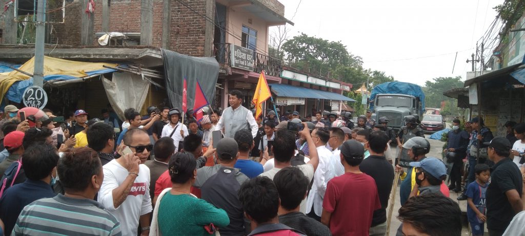उर्लाबारी । सोमबार मोरङको उर्लाबारी–३ मङ्गलबारेस्थित मदन भण्डारी स्मृति प्रतिष्ठानको २१औँ साधारणसभामा मुख्य मन्त्री हिक्मतकुमार कार्की आउने थाहा पाएपछि बिहान् ९ बजेदेखि पहिचानबादीहरु भेला भए । पुर्ब पश्चिम लोकमार्गको थापा चोकदेखि प्रतिष्ठान जाने बाटोमै भेला भएर करिब १ बजेसम्म नाराजुलुस गरिरहे ।