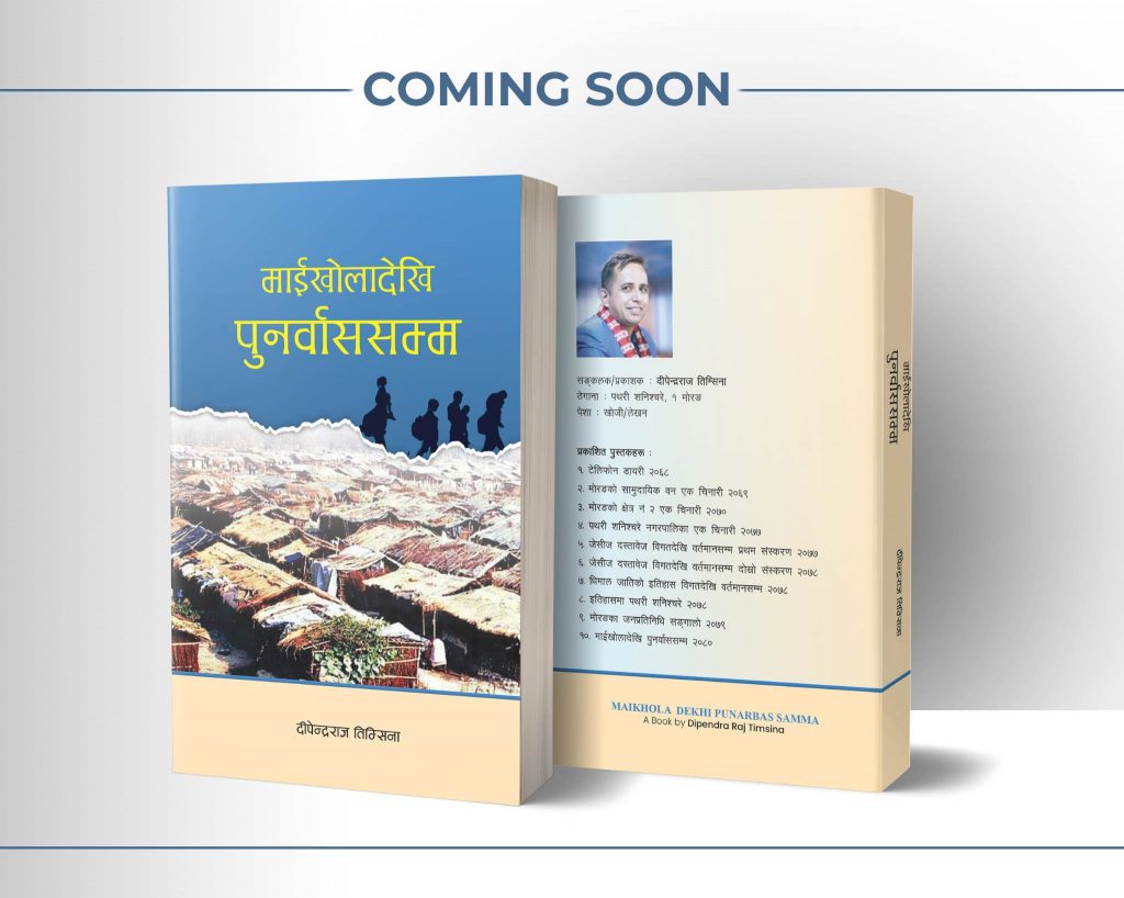 अहिले प्रकाशनकाे अन्तिम तयारीमा रहेको `माईखाेलादेखि पुनर्वाससम्म´ नामक दस्तावेज नेपाली भाषी भुटानी शरणार्थीकाे कथा व्यथा समेटिएको पुस्तक हाे । सन् १९९० ताका नेपाली भाषी भुटानीहरु कसरी भुटानबाट लखेटिनु पर्याे । सुरुमा भुटान भारतकाे सिमाना बस्दै पहिलोपटक कसरी माईखाेलामा आईपुग्नु भयो । त्यसबेला माईखाेला बगरमा छाप्रा हालेर बसेकाे कष्टकर पुर्ण बसाइँ, दैनिक दर्जनौं वालवालिकाकाे दुखद निधन भएको कहाली लाग्दो अबस्था केही खाेज्ने प्रयत्न गरेको छु । भुटानभित्र हुदा भएको दमन, हत्या काण्ड पनि याे किताबमा लेखिएको छ । तेस्रो देश पुनर्स्थापना भएपछि पनि विभिन्न देशकाे विभिन्न उच्च तहमा पुगेका भुटानी शरणार्थीहरुकाे खाेजी गरेको छु। भुटानी शरणार्थी दस्तावेज माईखाेलादेखि पुनर्वास लेख्न निकै समय लाग्यो । मसँग कुनै साधन पनि छैन । मान्छे भेट्न जाने पुराना कुराहरु खाेज्ने समय लाग्यो । २ बर्ष पुस्तक लेख्न समय लाग्यो । अमेरिका, अष्ट्रेलिया पुग्नु भएको नेपाली भाषीहरुसँग कुरा गर्दा समय यता र उताकाे नमिल्ने भएकोले अलि समय लाग्यो । सन्दर्भ सामाग्री खाेज्न पनि समय लाग्यो । कुनै एउटा मात्र दस्तावेज खाेज्न पटकपटक विर्तामोड बिराटनगर दाैडिनु परेकाे थियोे ।