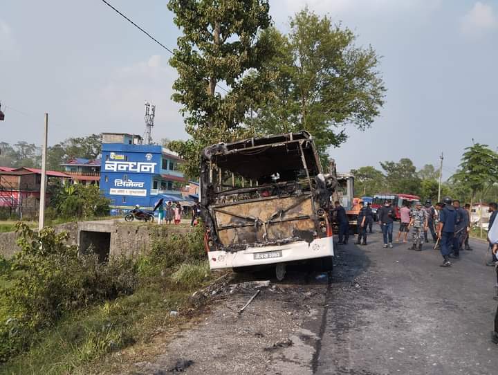 मे.१ ख.३०७३ नम्बरको बसकाे ठक्करबाट एककाे ज्यान गएपछि आक्राेशमा आएका स्थानीयले बसमा आगाे लगाएका हुन्। उर्लाबारी र पथरी नगरपालिकाको दमकलकाे सहयाेगमा आगाे नियन्त्रणमा लिएक छ । घटनाको बिस्तृत विबरण आउन बाकि रहेको छ।