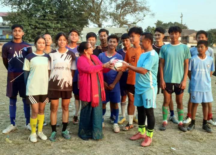 हसन्दह । मोरङको पथरी शनिश्चरे नगरपालिकाका उप–प्रमुख देविमाया काफ्लेले नगरका विभिन्न क्लबहरुलाई फुटबल वितरण गरेकी छिन् ।