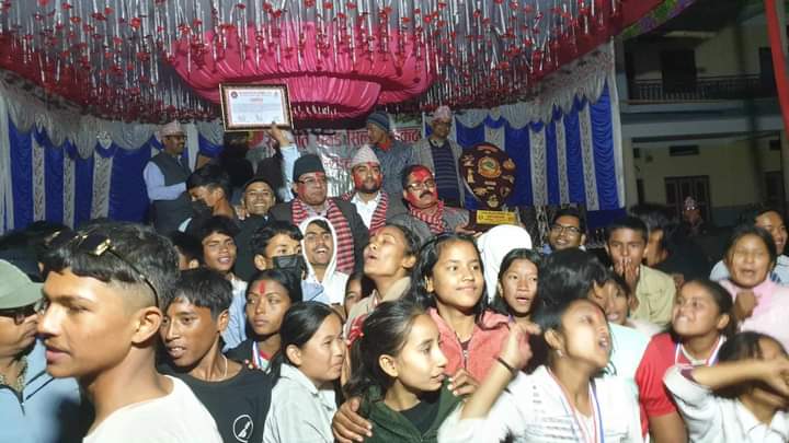 राष्ट्रपति रनिङ सिल्ड खेलकुद प्रतियोगिता व्यवस्थापन तथा निर्देशन समिति संयोजक समेत रहेका नगरप्रमुख तुम्वापोले सो प्रतियोगिताका विजेता तथा उपविजेता विद्यालयका सहभागिता खेलाडीहरूलाई सिल्ड, ट्रफी,मेडल र प्रमाण पत्र प्रदान गरे ।