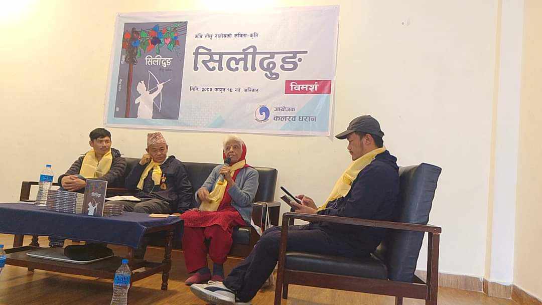 कलरव धरानले हाेटल पूर्वी स्टारमा भएको विमर्शलाई कवि एवम् साँस्कृतिक अभियन्ता अमित थेवेले सहजीकरण गरेका थिए । कार्यक्रममा बाेल्दै कवि राताेसले कृतिबारे बाेल्दै पहिचानको मायाले पुस्तक निस्किएको बताए ।  ‘युद्ध लड्दा देखेकाे, भाेगेकाे कुरा छ । साथै, म हुर्किएकाे माझ किरातकाे परिवेश छ । सिलीदुङ काे अर्थ सिलीकाे समय या युग हाे,’ पूर्व जनमुक्ति सेना समेत रहेका राताेसले भने । उनले सङ्ग्रहबाट ‘बाटोमा नदेखाइएका आत्माहरू’ कविता सुनाए । वरिष्ठ कवि बम देवानले समापन मन्तव्य राख्दै नेपालमा सामाजिक साँस्कृतिक र जातीय समानताकाे आन्दोलनले राजनीतिलाई प्रभावित गरिरहेको बताए । कार्यक्रममा वरिष्ठ पत्रकार हर्ष सुब्बा, कविहरू हेमन यात्री, पराजित पाेमु, हेन्सेन याक्खा, निला तामाङ, हिक्मत खड्का, श्रेष्ठ परिक्रमा, चेवन श्री, सविता फागाे चाेङवाङ, छविना लुङ्गेली मगर, दीपा मग्रान्ति, वर्षा भण्डारी, नाट्यकर्मी प्राज्ञ विष्णु माेक्तान, लेखक हितराम तिल्लिङ, युवा नेताहरू उपार्जुन चाम्लिङ, ललिता फागाे, पत्रकार मनिता चाम्लिङ, भाेजराज श्रेष्ठ, विकास चाम्लिङ लगायत थिए ।