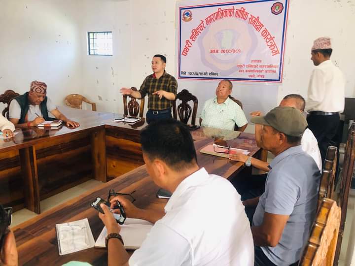 आज नगरपालिकाको सभाहलमा भएको सो समीक्षा कार्यक्रममा नगरपालिकाका शाखा प्रमुखहरु र वडा सचिवहरुले आ–आफ्नो कार्यप्रगति प्रस्तुत गरेका छन् । नगर प्रमुख मोहन प्रसाद तुम्वापोको अध्यक्षतामा भएको सो कार्यक्रममा सुरुवातमा कार्यक्रमको विषयमा प्रमुख प्रशासकीय अधिकृत शशि राईले प्रष्ट्याए । प्रशासन शाखा प्रमुख लुकनाथ पोख्रेलले सञ्चालन गरेको समीक्षा कार्यक्रममा वडा अध्यक्षहरु, कार्यपालिका सदस्यहरू र विभिन्न शाखाका प्रतिनिधिहरूको उपस्थिति रहेको थियो ।