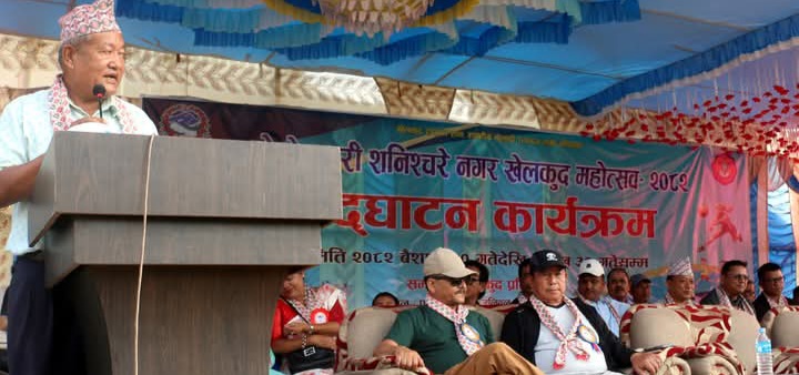 पथरी शनिश्चरे नगरपालिकाका नगर प्रमुख मोहन प्रसाद तुम्वापोले शनिबार खेलकुद महोत्सवको उद्घाटन गरेका छन् । उद्घाटन कार्यक्रममा नगर उप–प्रमुख देविमाया काफ्ले, प्रमुख प्रशासकीय अधिकृत शशि राई, निवर्तमान नगर प्रमुख दिलिपकुमार राई (किशोर), वडाध्यक्षहरु भीम राई, नैना राई, बिजय लिम्बु, लोककिरण न्यौपाने, उद्धवराज बस्नेत, नविन कार्की, शिक्षा शाखा प्रमुख एवं नगर खेलकुद विकास समितिका सदस्य सचिव नविन खुलाल, कार्यपालिका सदस्यहरु, सामाजिक व्यक्तित्वहरु र राजनीतिक दलका प्रतिनिधिहरुको उपस्थिति रहेको थियो ।