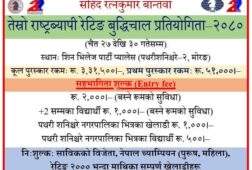 पथरी । मोरङको पथरी शनिश्चरेमा चैत्र २७ गतेदेखि ३० गतेसम्म तेस्रो राष्ट्रिय बुद्धिचाल प्रतियोगिता २०८० हुने भएको छ । शहिद रत्नकुमार बान्तावाको स्मृतिमा ३ दिवसिय प्रतियोगिता हुने भएको हो । फेन्डसिप चेस क्लबले आयोजना गरेको प्रतियोगितामा ११ लाख रुपैयाँ खर्च हुने आयोजक समितिका कोषाध्यक्ष डम्बर बाछाना राईले जानकारी दिए । प्...